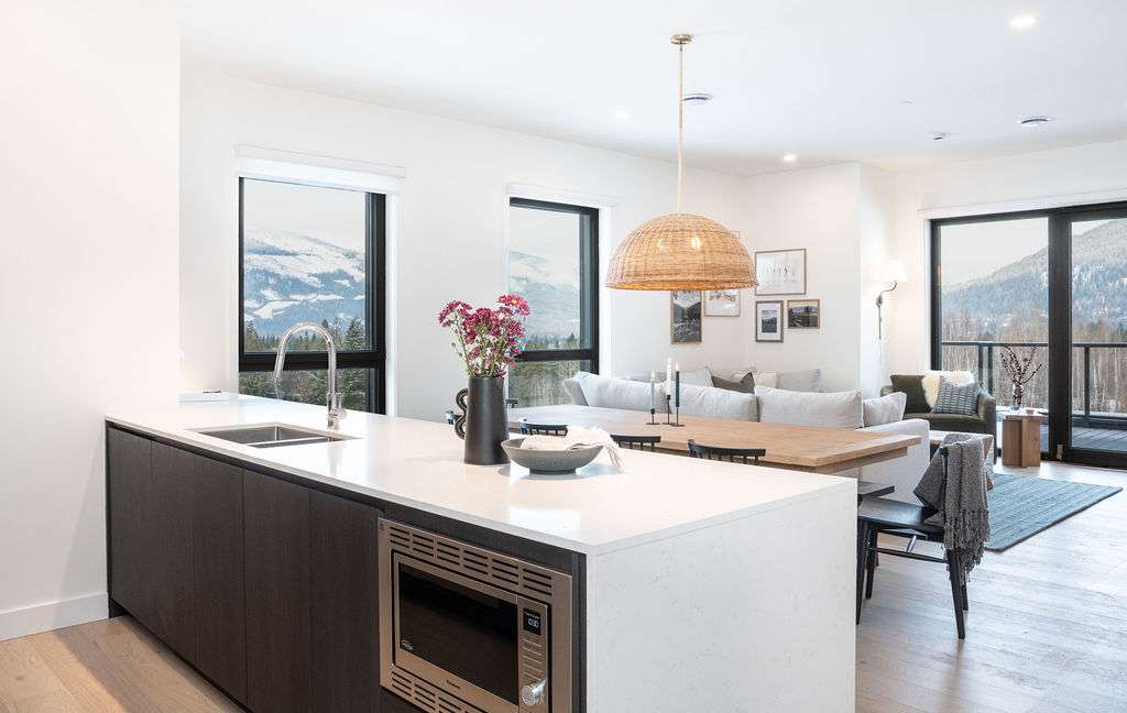 This condo brings together custom details and a warm, refined palette to create a layered and inviting space. A custom tile fireplace anchors the living space, complemented by custom wallpaper and thoughtfully crafted millwork throughout. Neutral tones establish a sense of warmth and calm, while carefully placed pops of colour add personality and vibrancy.